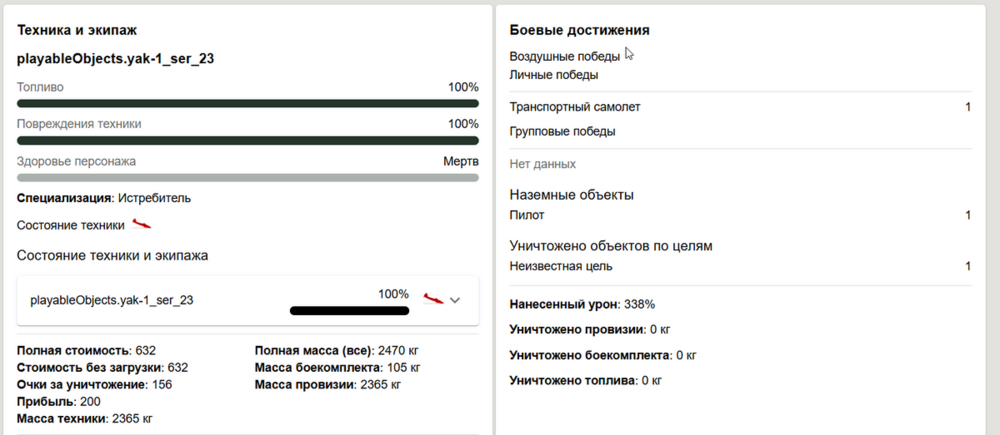 1. Сбил транспорт, сбитие защитано, но в учете уничтоженных ресурсов всё по нолям: Или там только уничтоженные ресурсы на земле должны отображаться?